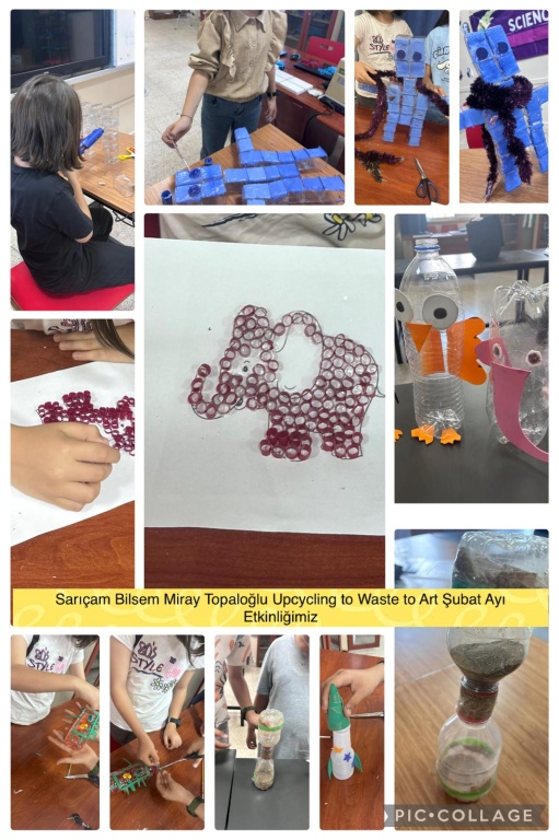 Öğrencilerimiz, çevre bilinci kazanmaları ve geri dönüşümün önemini kavramaları amacıyla kağıt, cam, plastik ve metal atıkları kullanarak birbirinden yaratıcı sanat eserleri ortaya koydular. Bu etkinlikle birlikte hem çevreye duyarlı bireyler yetiştirme hedefimize bir adım daha yaklaştık hem de öğrencilerimizin yaratıcılıklarını sanatla ifade etmelerine imkan sunduk.