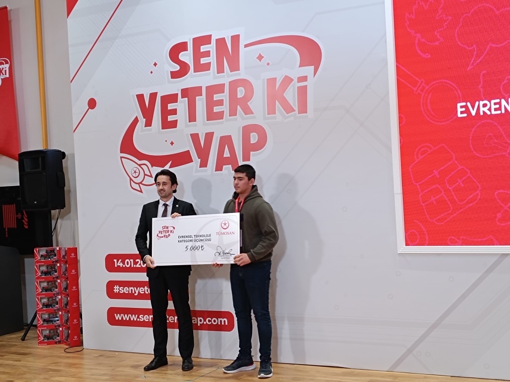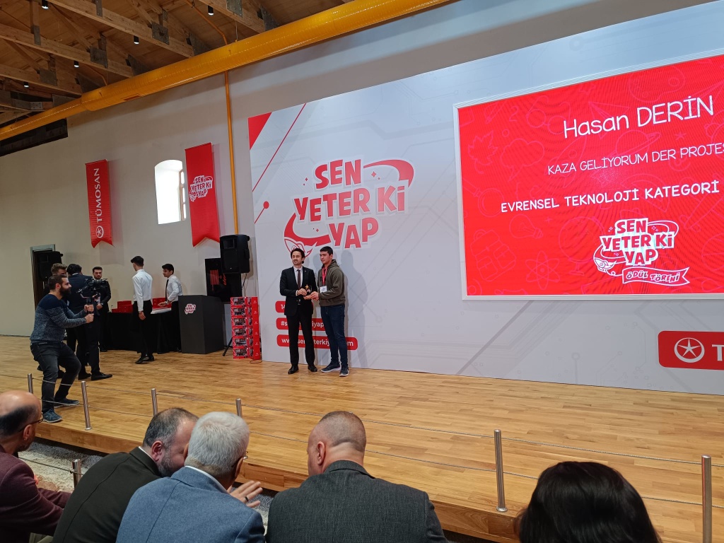 Bilim ve teknoloji yarışmasında; eğitici teknolojiler, enerji ve çevre, engelsiz yaşam, evrensel teknoloji, gıda ve tarım ve robotik olmak üzere toplamda 6 kategoride aralarında öğrencimiz tarafından hazırlanan “Kaza Geliyorum Der” isimli projenin de bulunduğu 16 proje ödül sahibi oldu. Evrensel Teknolojiler kategorisinde yarışarak Türkiye 3. lüğü ödülünü kazanan öğrencimiz Hasan D. ve danışman öğretmeni Zafer BÜKÜLMEZ'i kutlar, başarılarının devamını dileriz.